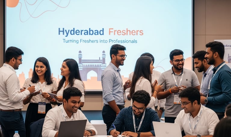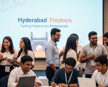At HyderabadFreshers.com, we believe that every graduate deserves a strong start. Our mission is to help fresh talent from Hyderabad , Telangana gain real-world project experience in the fast-growing web and digital industry. Whether you’re a recent high school, diploma, bachelor’s, or master’s graduate, this is your platform to learn, create, and grow.